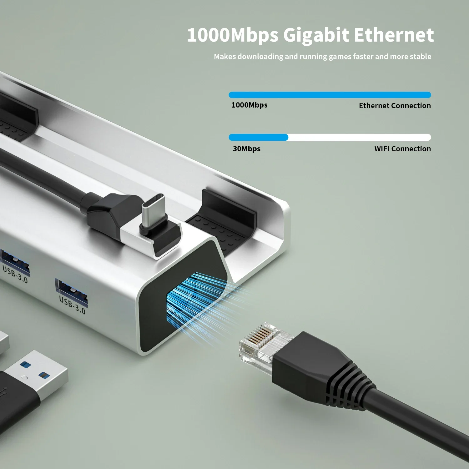 Enhance your Steam Deck experience with our Aluminum 6-in-1 Hub Docking Station. Connect up to six devices for seamless gaming. Designed with durable aluminum for a sleek look and reliable performance. Elevate your gaming setup with our versatile and convenient hub.
