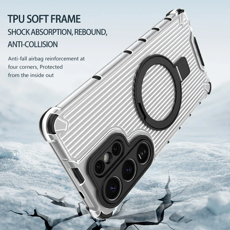 Secure your Galaxy S26 with contemporary style. The magnetic ring stand rotates for optimal viewing angles during video calls, streaming, or content creation.